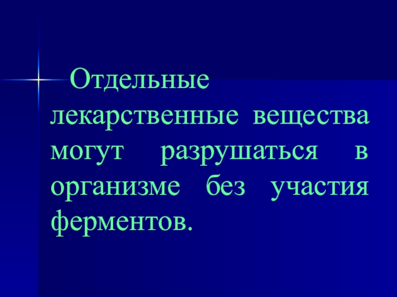 Слайд 21Отдельные лекарственные вещества могут разрушаться в организме без участия ферментов.