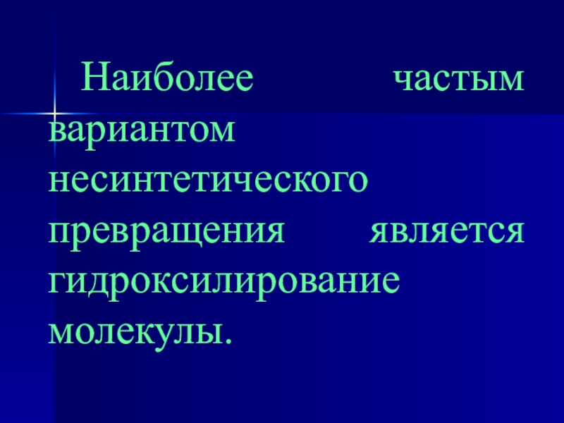 Слайд 19Наиболее частым вариантом несинтетического превращения является гидроксилирование молекулы.