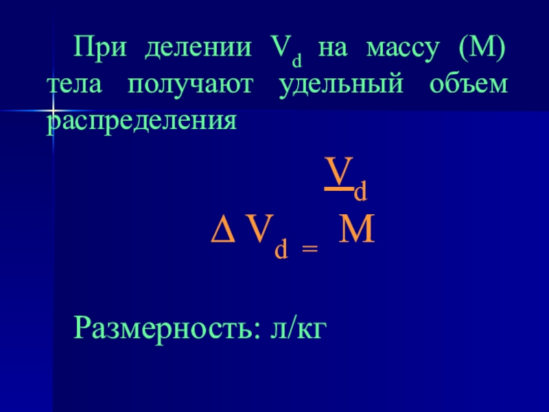 Слайд 35При делении Vd на массу (М) тела получают удельный объем