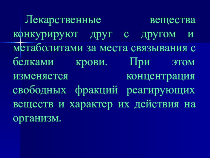 связывания с белками крови. При этом изменяется концентрация свободных фракций
