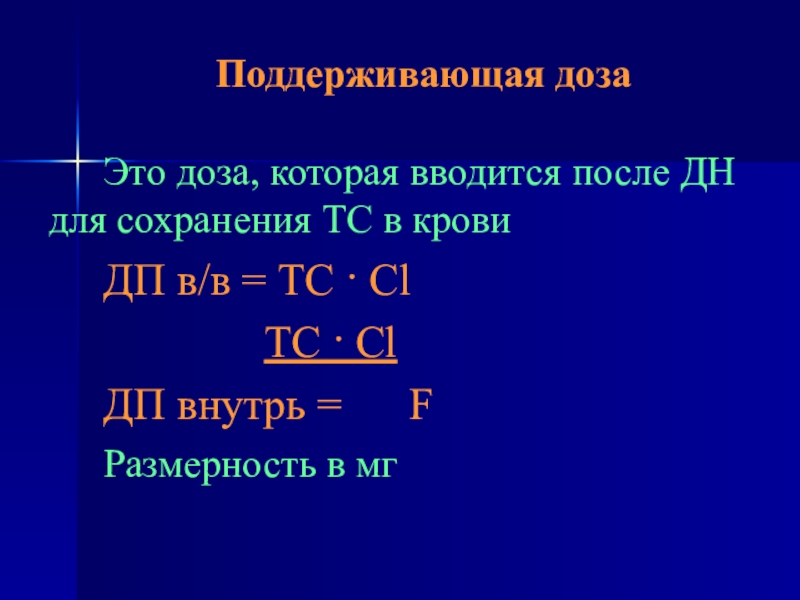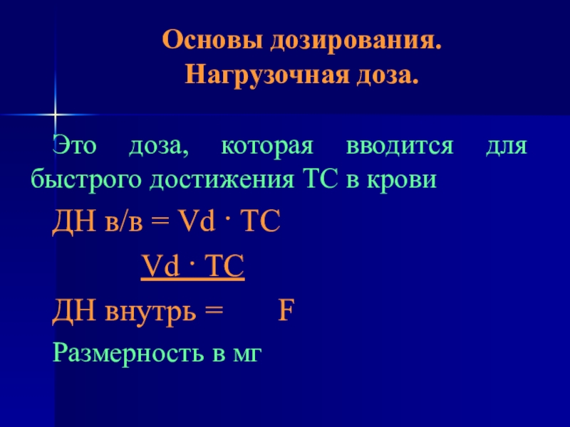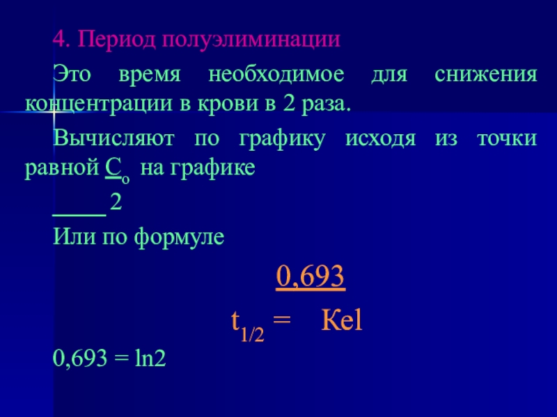 Слайд 332. Начальная концентрация лекарственного вещества в крови