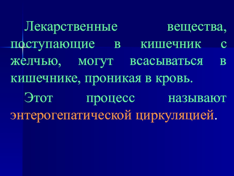 Слайд 27Лекарственные вещества, поступающие в кишечник с желчью, могут всасываться в