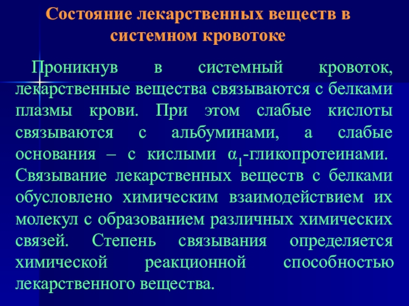 Слайд 9Состояние лекарственных веществ в системном кровотоке