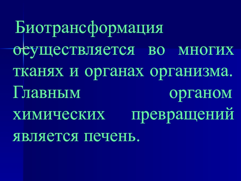 Слайд 16Биотрансформация осуществляется во многих тканях и органах организма. Главным органом