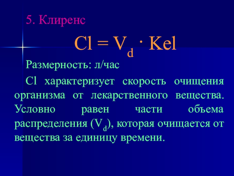организма от лекарственного вещества. Условно равен части объема распределения (Vd),