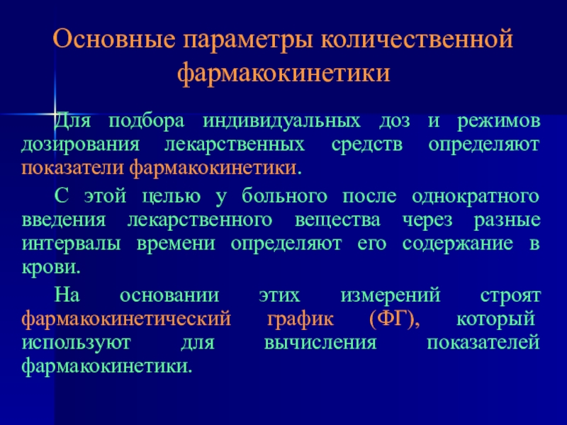 На основании этих измерений строят фармакокинетический график (ФГ), который используют для вычисления показателей фармакокинетики.