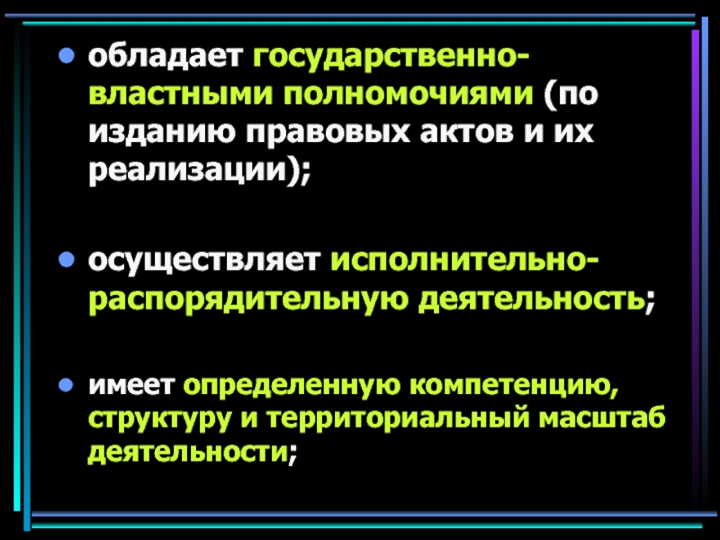 Слайд 3обладает государственно-властными полномочиями (по изданию правовых актов и их реализации);
