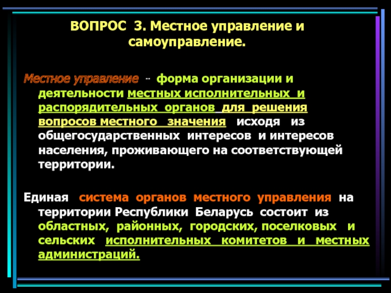 Слайд 17ВОПРОС 3. Местное управление и самоуправление.