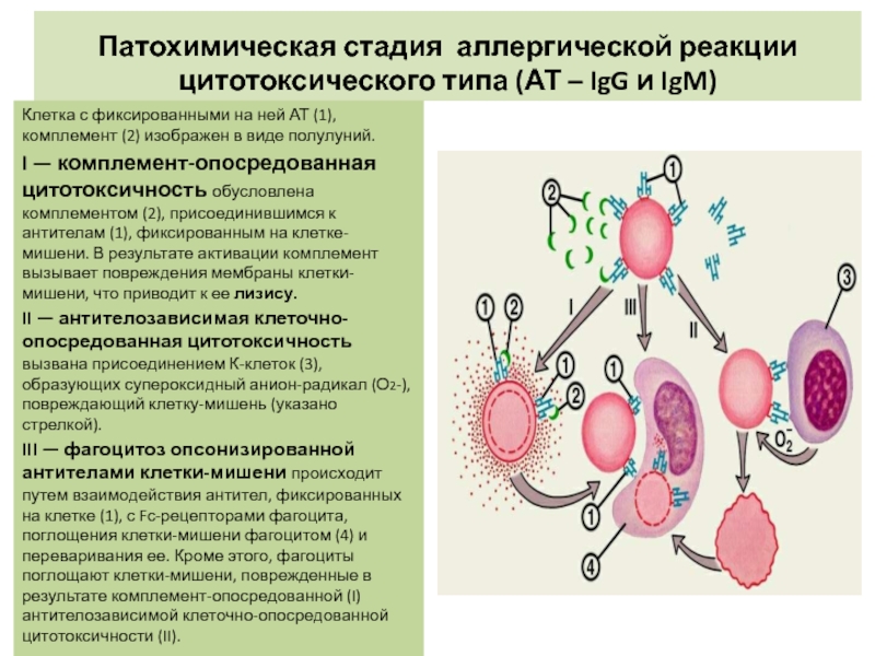 сенсибилизированных лимфоцитов и соединение их с повторно поступившим или персистирующим в организме аллергеном.