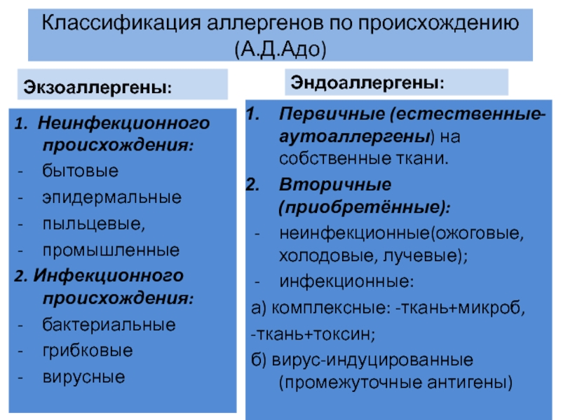 Слайд 4Классификация аллергенов по происхождению (А.Д.Адо)