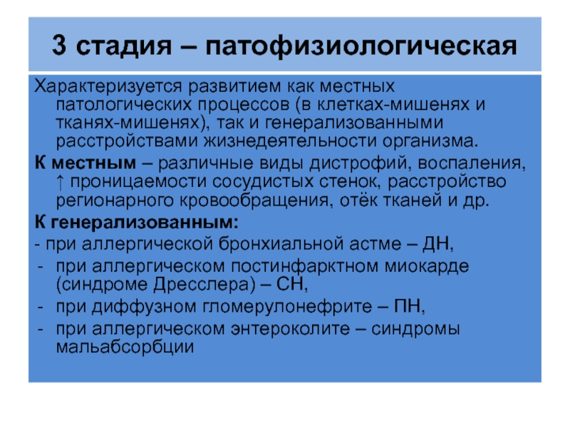 Слайд 35Патофизиологическая стадия иммуннокомплексного типа аллергических реакций
