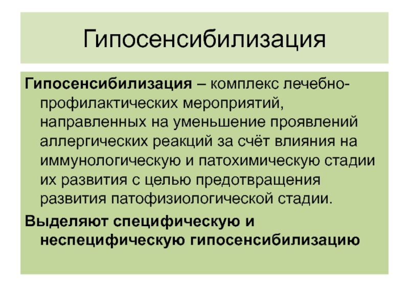 Гипосенсибилизация – комплекс лечебно-профилактических мероприятий, направленных на уменьшение проявлений аллергических