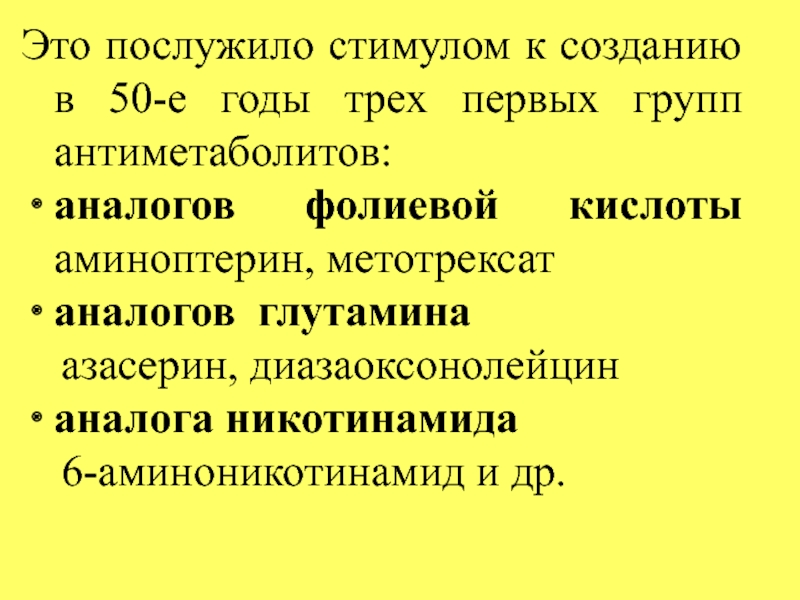 Слайд 34Из них только метотрексат нашел клиническое приме-нение, сначала при лечении