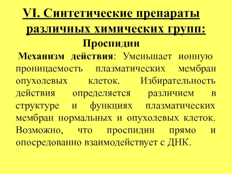 Слайд 49VI. Cинтетические препараты различных химических групп: