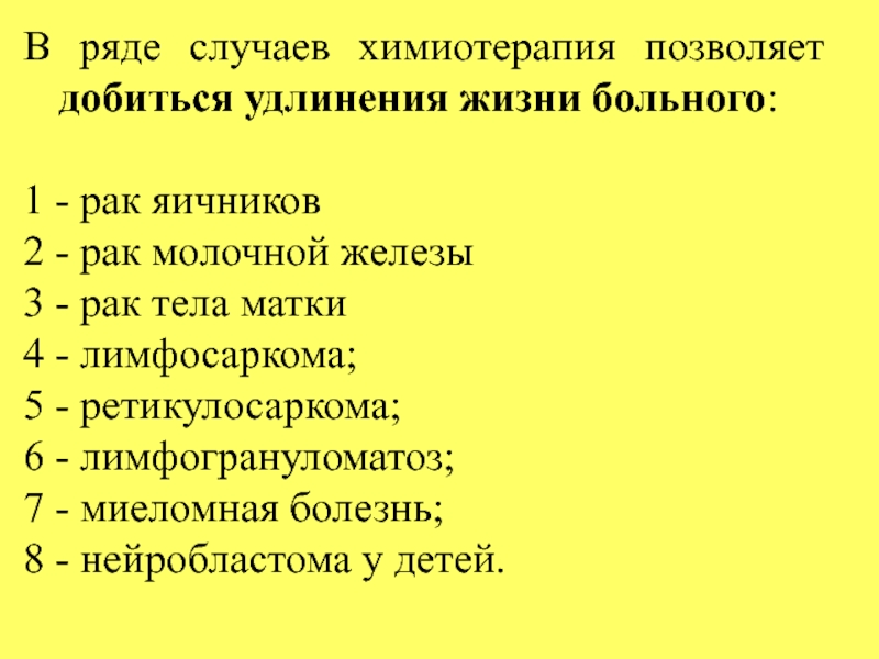 Слайд 14В ряде случаев химиотерапия позволяет добиться удлинения жизни больного: