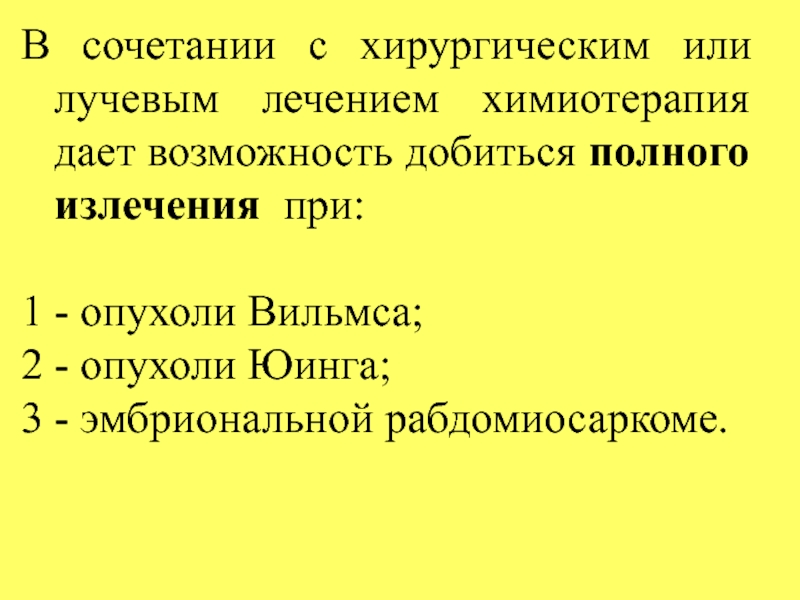 Слайд 13В сочетании с хирургическим или лучевым лечением химиотерапия дает возможность