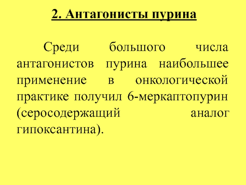 онкологической практике получил 6-меркаптопурин (серосодержащий аналог гипоксантина).