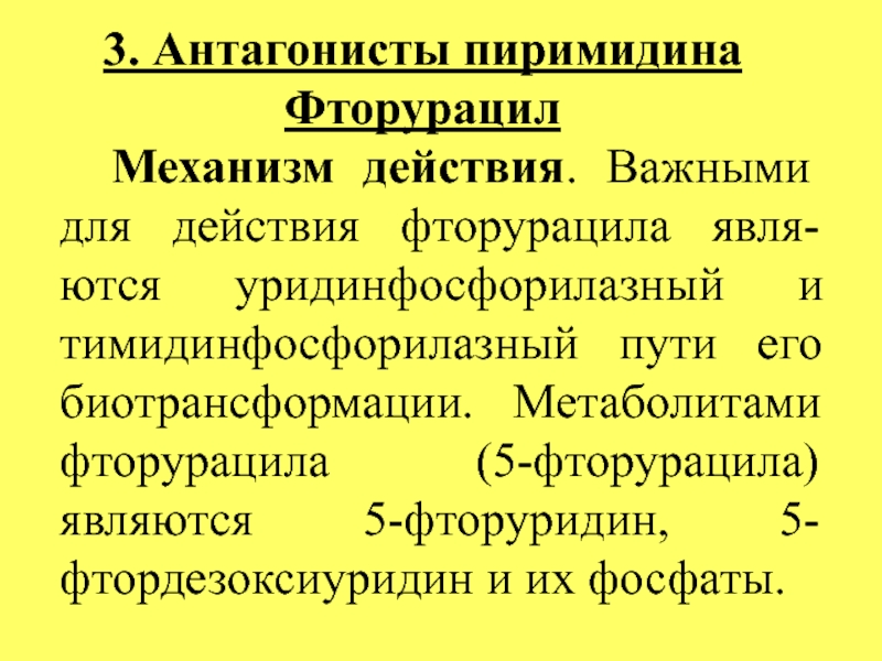 и тимидинфосфорилазный пути его биотрансформации. Метаболитами фторурацила (5-фторурацила) являются 5-фторуридин,