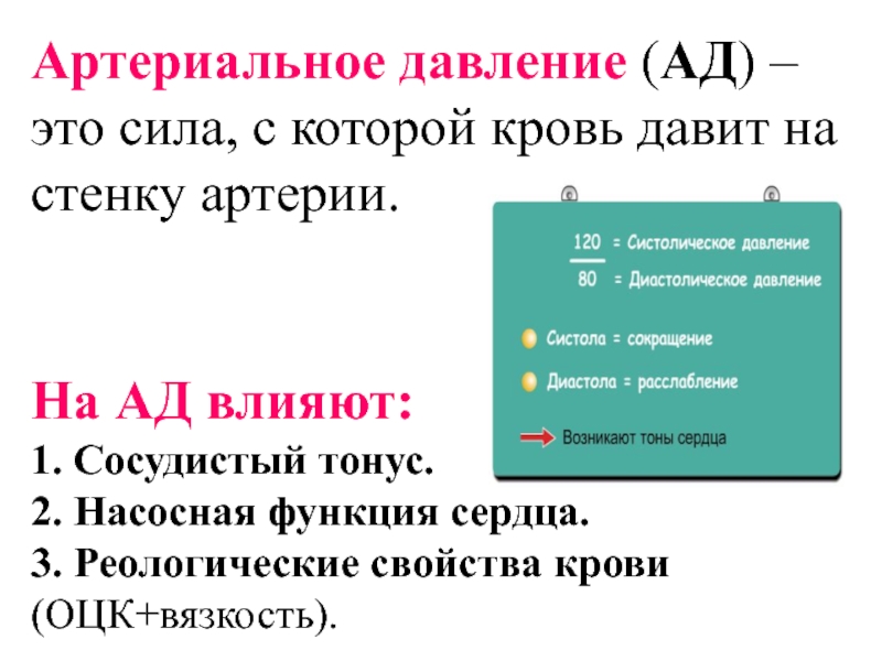 Слайд 2Артериальное давление (АД) – это сила, с которой кровь давит