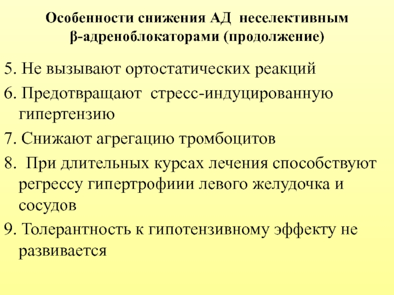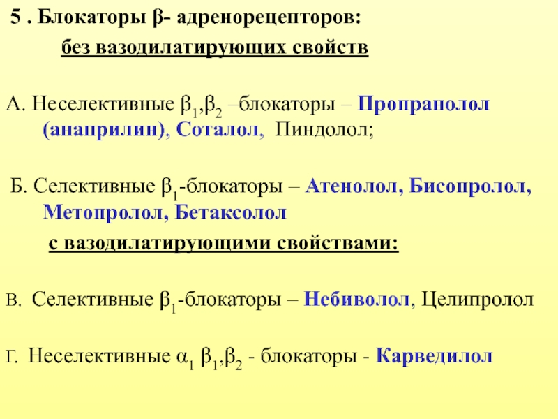 Пропранолол (анаприлин), Соталол, Пиндолол;