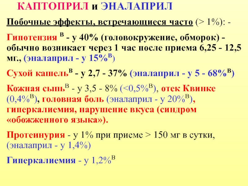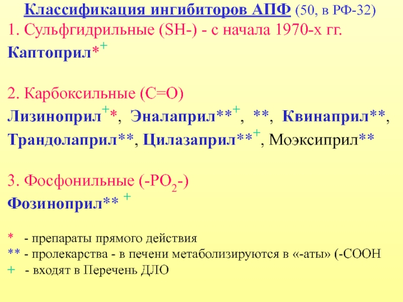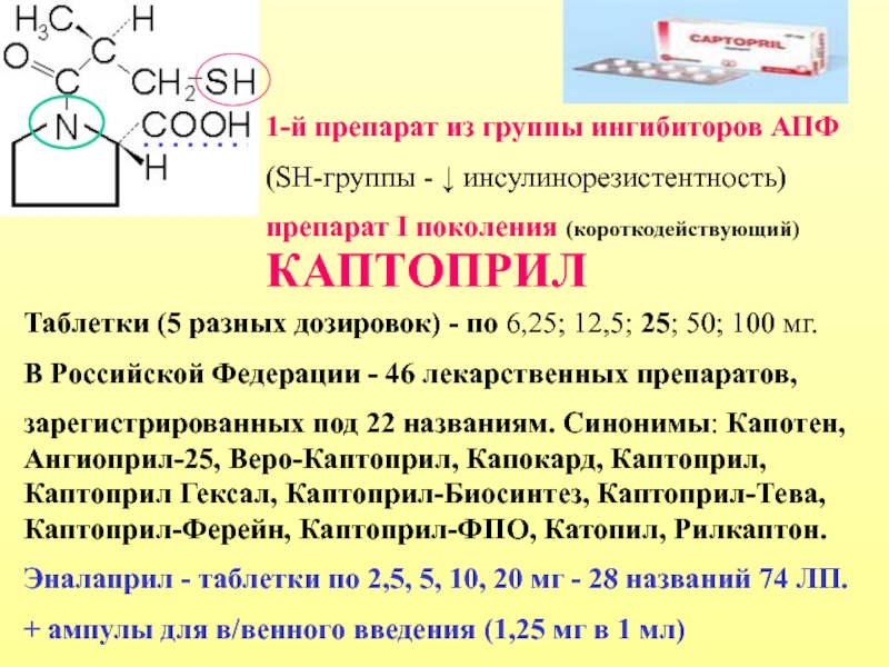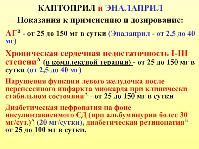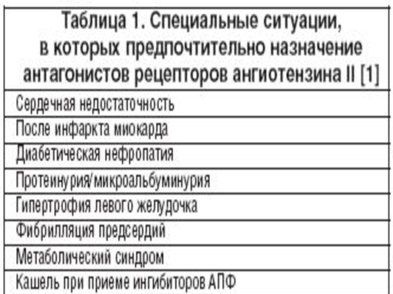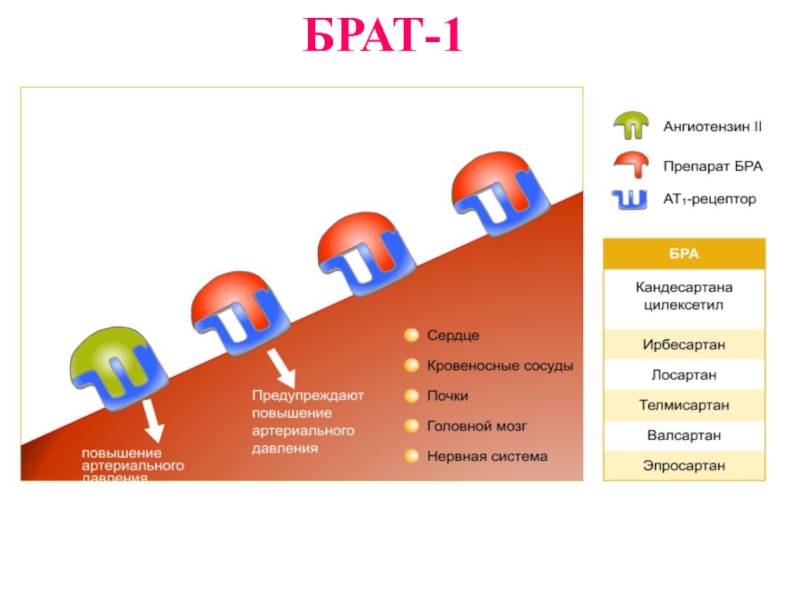 Каптоприл, Периндоприл, Эналаприл; БРАТ- Лозартан, Валсартан