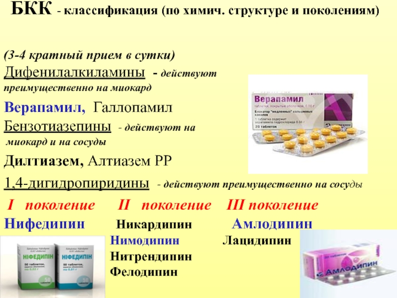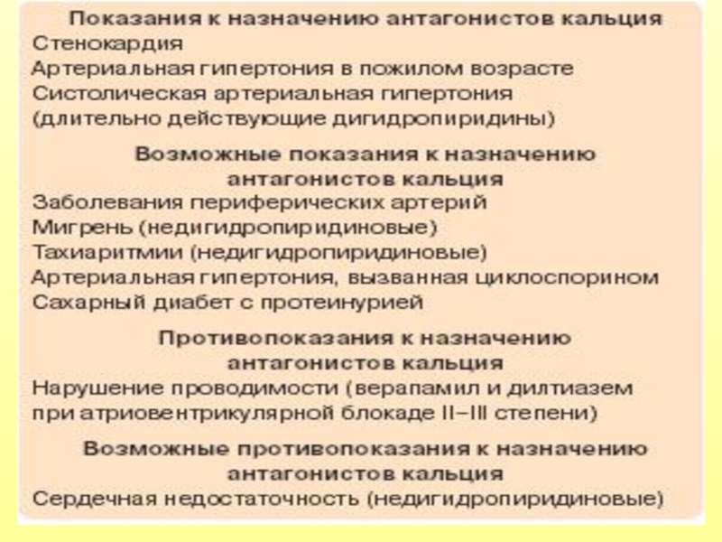 (антагонисты кальция) – Верапамил, Нимодипин, Нифедипин, Амлодипин, Лацидипин