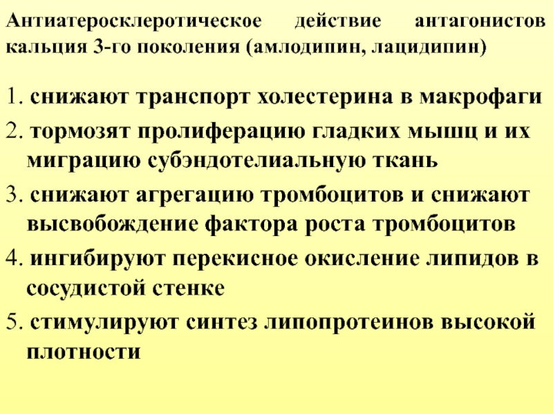 Слайд 56Антиатеросклеротическое действие антагонистов кальция 3-го поколения (амлодипин, лацидипин)