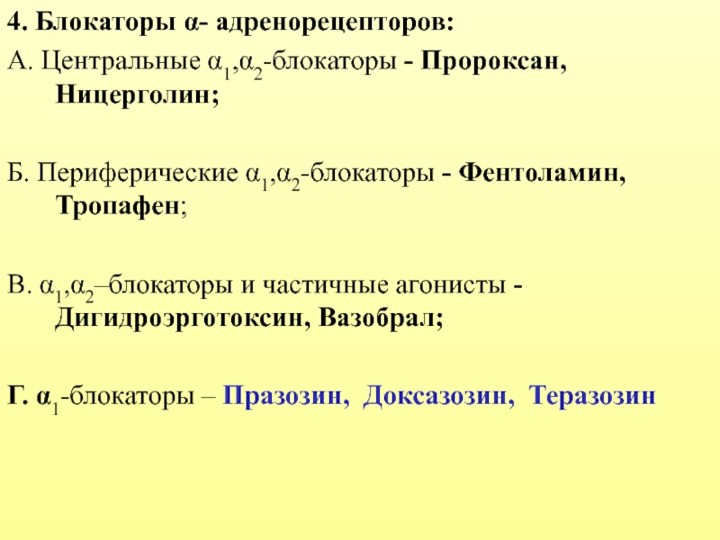 В. 1,2–блокаторы и частичные агонисты - Дигидроэрготоксин,