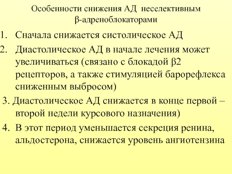 3. Диастолическое АД снижается в конце первой –второй недели курсового назначения)