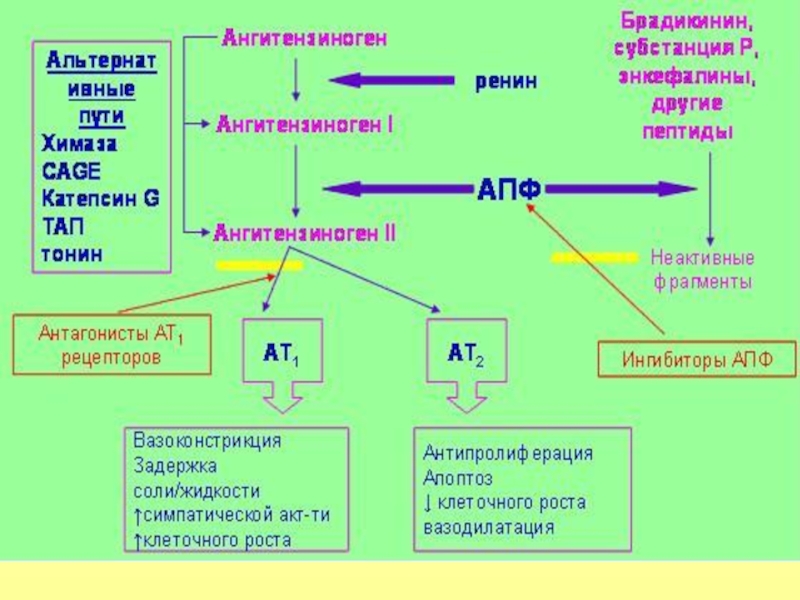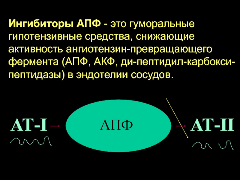 Слайд 18Ингибиторы АПФ - это гуморальные гипотензивные средства, снижающие активность ангиотензин-превращающего