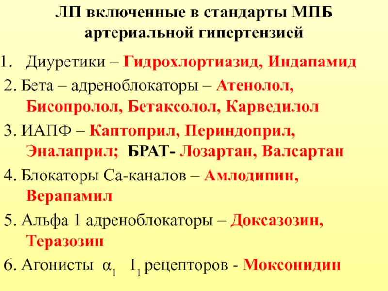 Слайд 17ЛП включенные в стандарты МПБ артериальной гипертензией