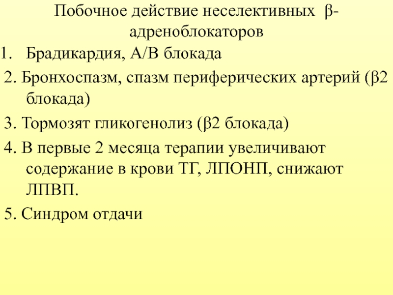 Слайд 52Побочное действие неселективных β-адреноблокаторов