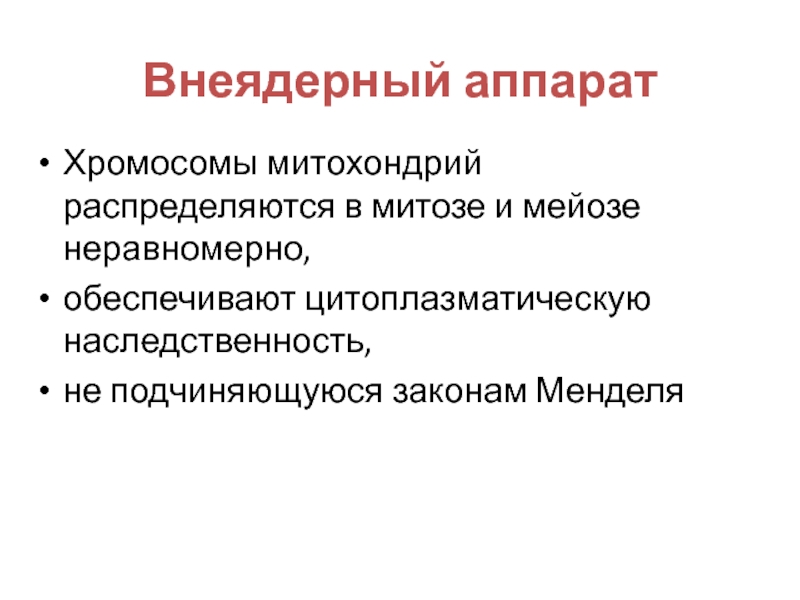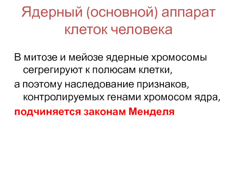 80-е гг. XIX в. - описаны митоз и мейоз, в ходе которых между дочерними клетками распределяются ядерные структуры —хромосомы (В. Вольдейер, 1888).