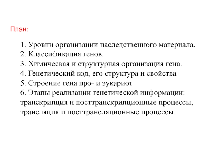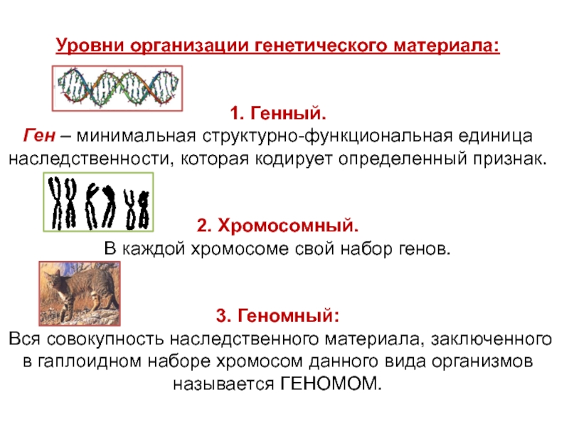 Структурно-функциональная организация наследственного материала (генный, хромосомный и геномный уровни).