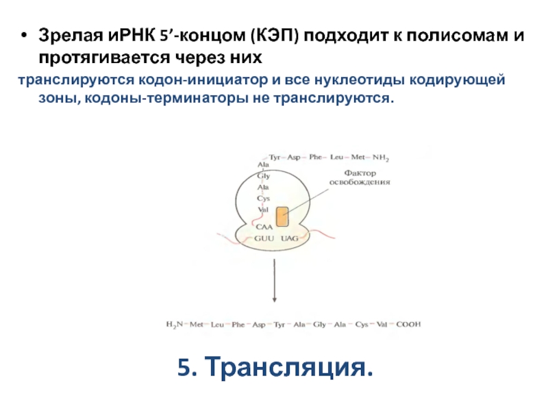 Зрелая иРНК 5’-концом (КЭП) подходит к полисомам и