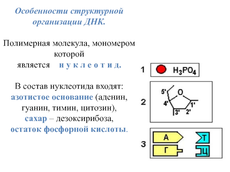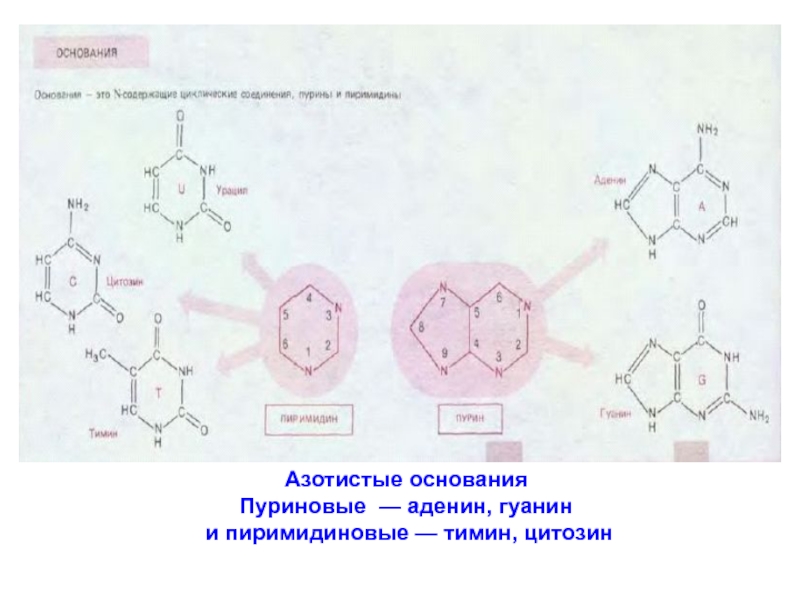 входят: азотистое основание (аденин, гуанин, тимин, цитозин),