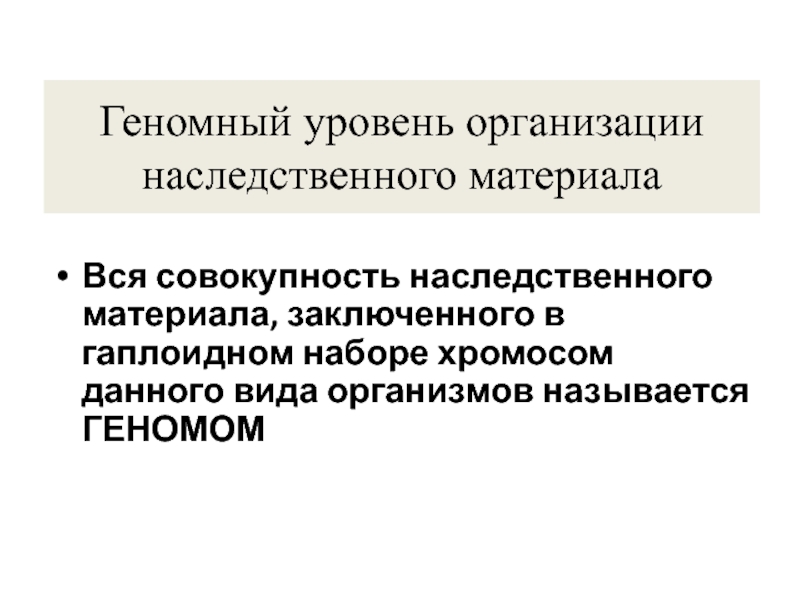 Вся совокупность наследственного материала, заключенного в гаплоидном наборе хромосом данного вида организмов называется ГЕНОМОМ.
