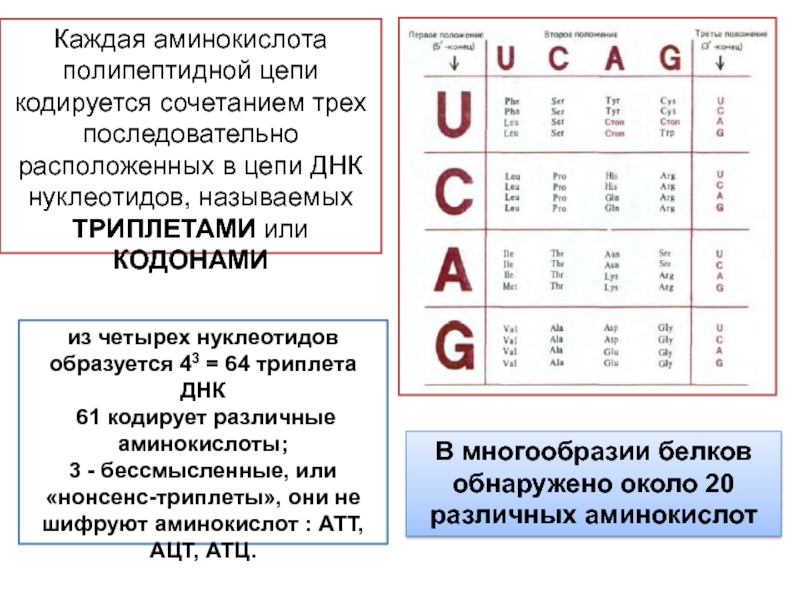 соответствие триплетов нуклеотидов в молекуле нуклеиновых кислот определенным аминокислотам.