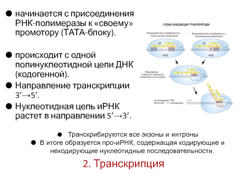 начинается с присоединения РНК-полимеразы к «своему» промотору (ТАТА-блоку).