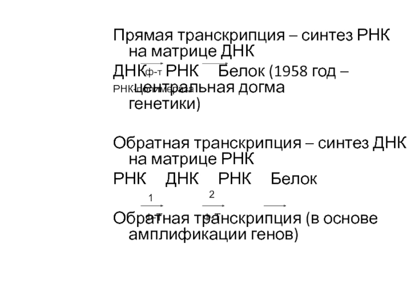 Слайд 80Прямая транскрипция – синтез РНК на матрице ДНК