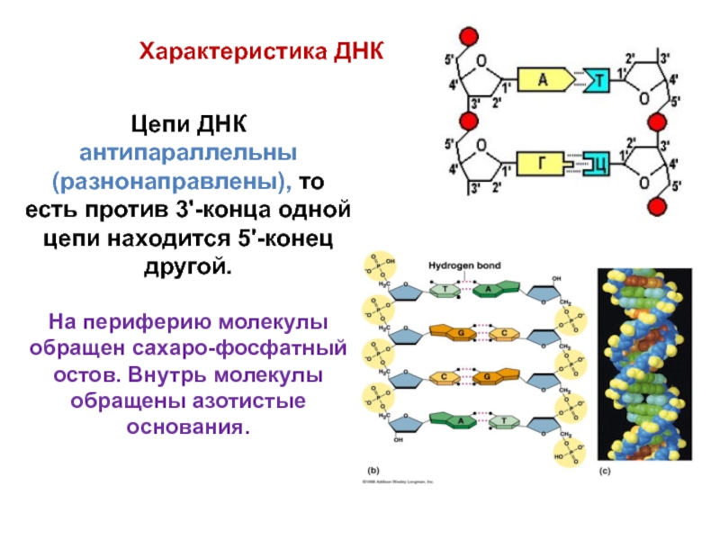 Полинуклеотидные цепи спирально закручены друг около друга и