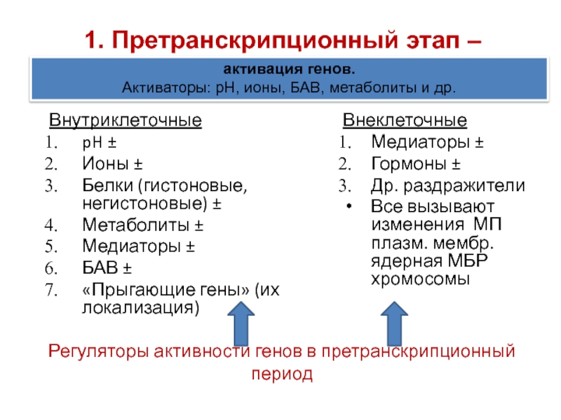Слайд 76Регуляторы активности генов в претранскрипционный период