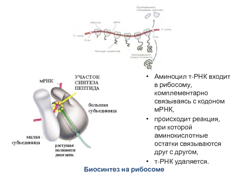 Аминоцил т-РНК входит в рибосому, комплементарно связываясь с