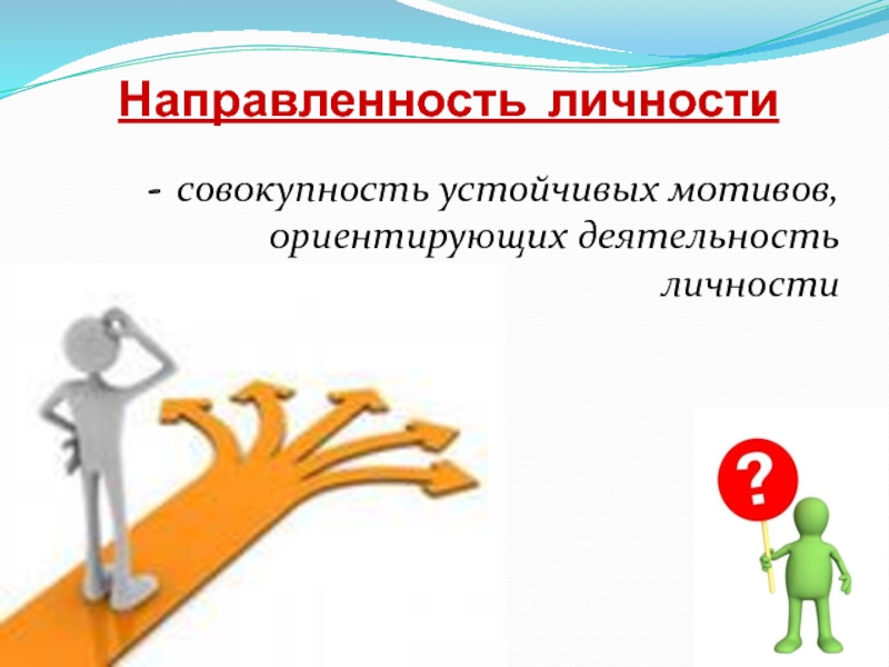 - НАПРАВЛЕННОСТЬ –совокупность устойчивых мотивов, ориентирующих деятельность