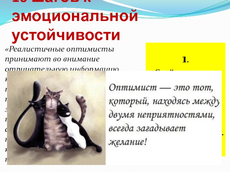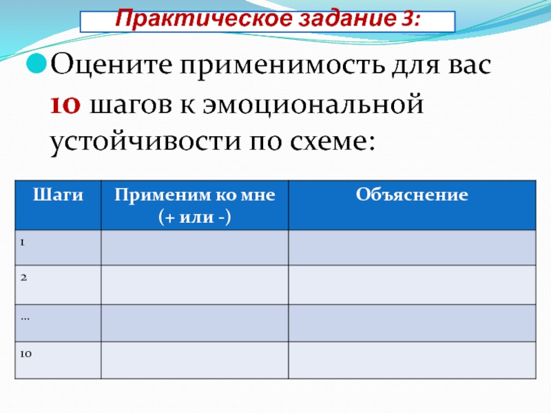 Слайд 87Оцените применимость для вас 10 шагов к эмоциональной устойчивости по