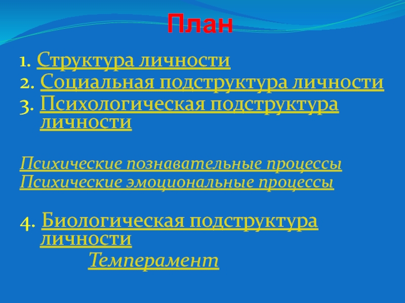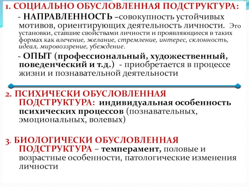 3. БИОЛОГИЧЕСКИ ОБУСЛОВЛЕННАЯ ПОДСТРУКТУРА – темперамент, половые и возрастные особенности, патологические изменения личности