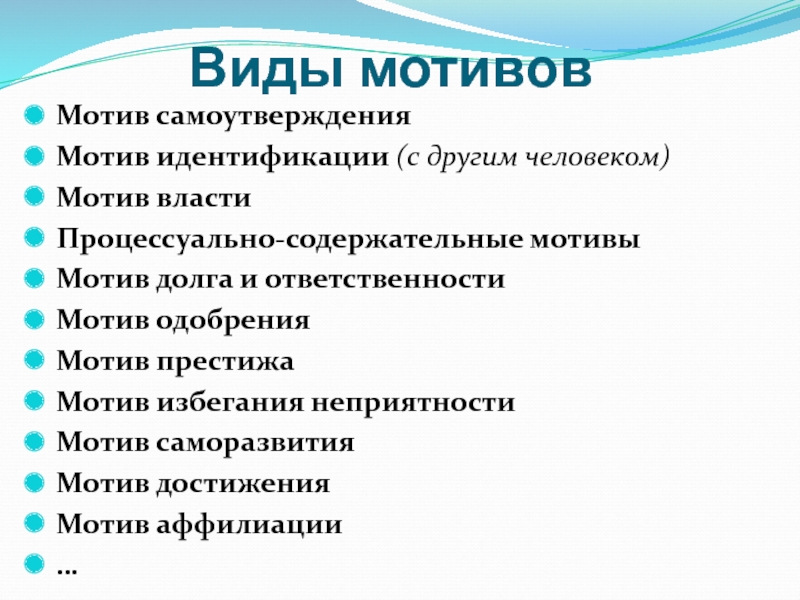 формах как влечение, желание, стремление, интерес, склонность, идеал, мировоззрение, убеждение.