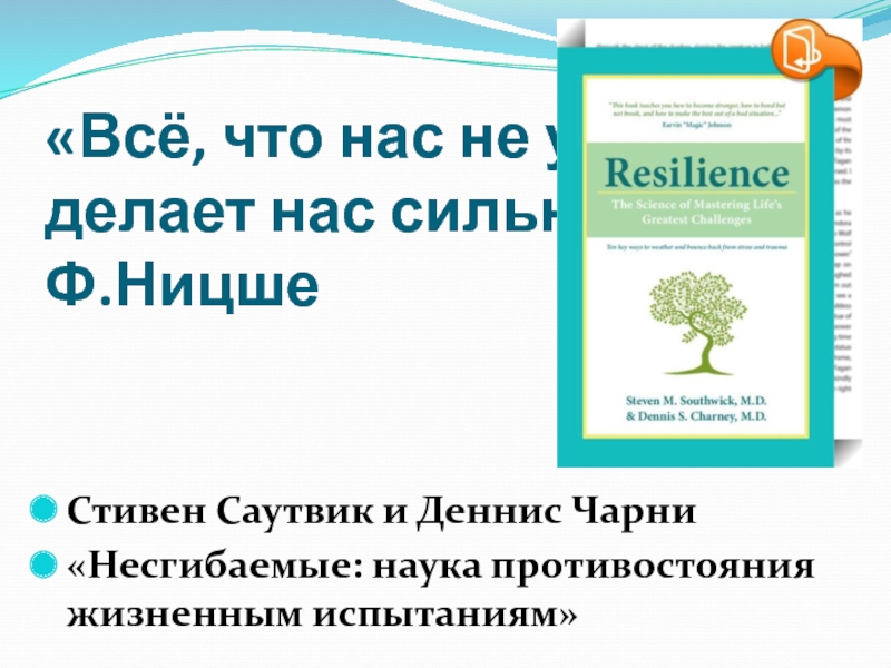 травм, способность противостоять стрессу, развитое чувство собственного достоинства и самодостаточности и многое другое.»