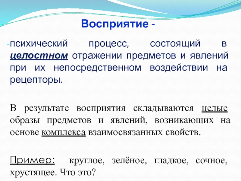 I. Какие свойства восприятия (апперцепция, выделение предмета из