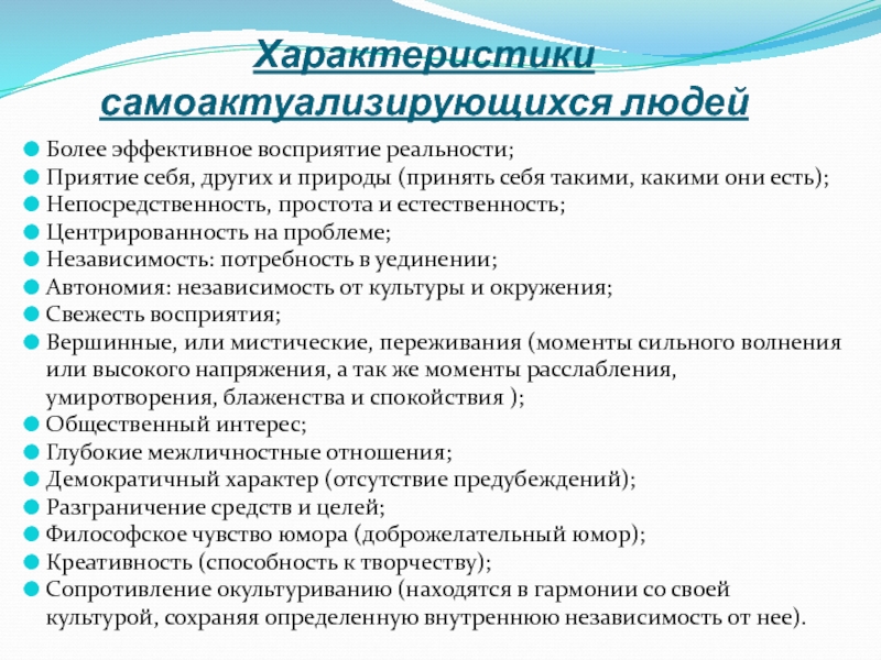 Целеустремленность, упрямство, вдумчивость, высокая эмоциональность, старательность, цельность, приятный голос, общественная активность, критичность ума, прекрасная дикция, средний рост, музыкальность, вспыльчивость, моральная воспитанность, низкая адаптация к темноте, трудолюбие, плохая пространственная ориентация, голубые глаза, хороший слух, идейная убежденность, внимательность, подвижность, честность, тревожность, вера, страх, благородство, леность, стресс, меланхолия, авторитет, речь, убеждения, инстинкты, знания, задатки, идеалы, возрастные особенности, тип нервной деятельности, механическая память, мышление, гуманность.